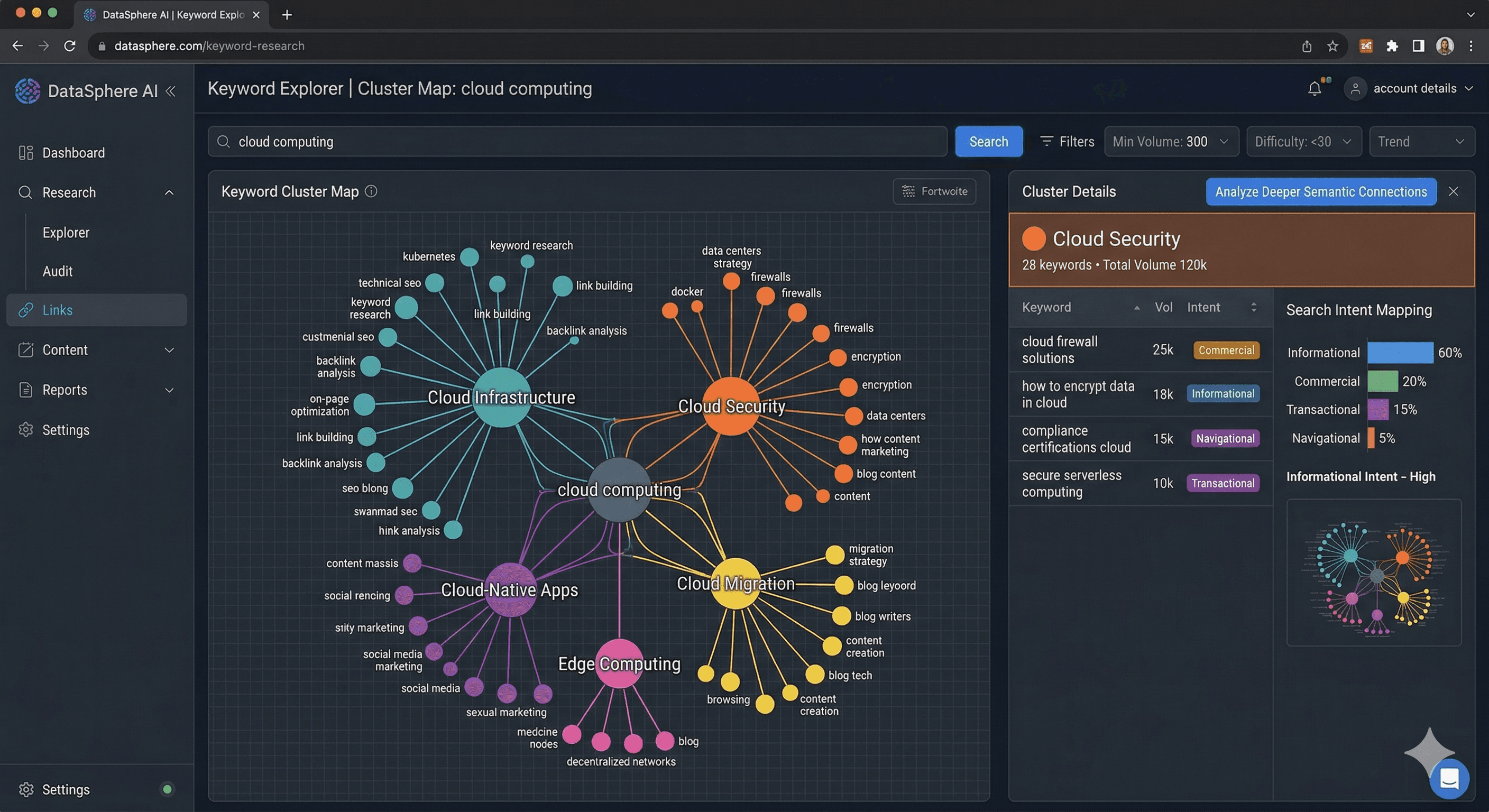 AI transforms keyword research from a data collection exercise into a deep intent-mapping process. Instead of simply identifying high-volume terms, AI tools analyze search behavior patterns, semantic relationships, and even emerging queries before they trend — giving you a first-mover advantage.